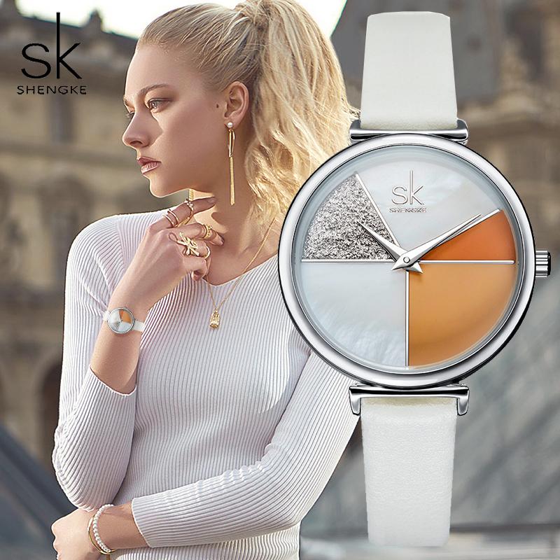 Елегантен и оригинален дамски часовник с японски механизъм, кръгъл корпус и каишка от еко кожа. Циферблатът е разделен с приятни цветови комбинации. Корпусът е в сребрист цвят, каишката в бял. Материалът на стъклото е Hardlex. Дизайнът е модерен и изчистен.