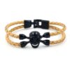 Мъжка гривна SKULL , направена от естествена кожа в жълт цвят и елементи от цинкови сплави в черен цвят. Дължина 22см, декорации с ширина 1,5см и 4см.
